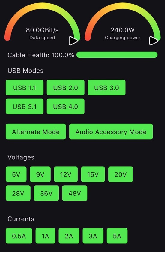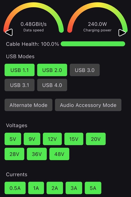 Here’s what a ‘normal’ USB-C cable test results look like.